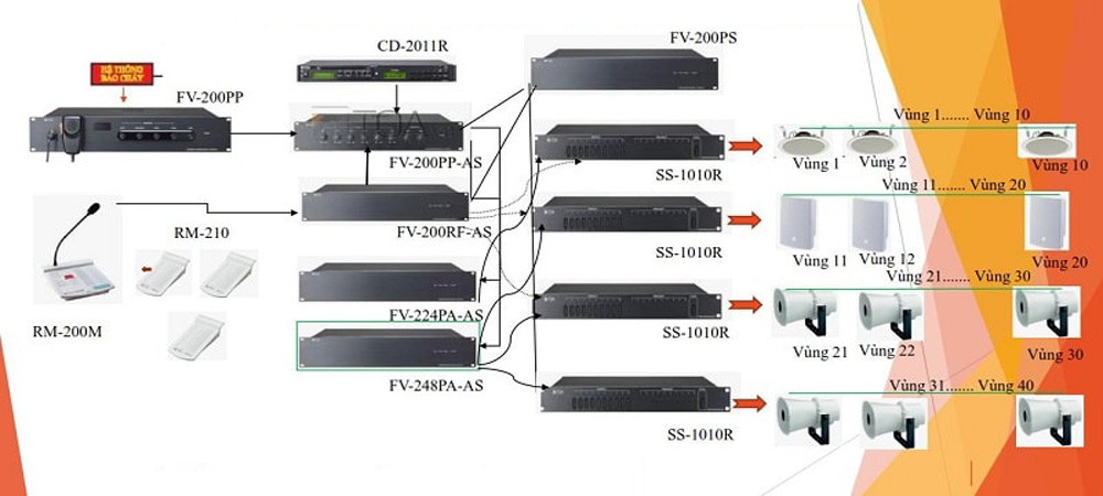3. Hệ thống âm thanh công cộng (Public Adress): Hệ thống âm thanh thông báo công cộng, nhằm truyền đạt các thông tin, tin nhắn và thông điệp